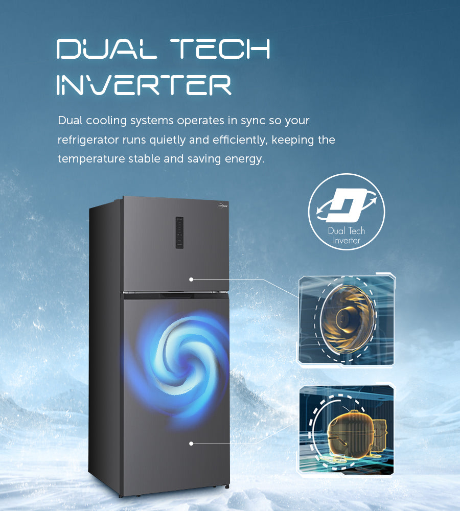 The 480L Top Mount Refrigerator is all about space and simplicity. With features like All Zone Cooling for even temperatures everywhere, a Fresh Zone to keep fruits and veggies at their best, and Power Cool to chill groceries fast, it’s perfect for busy households. Plus, it runs quietly and saves energy with Dual Tech Inverter technology.