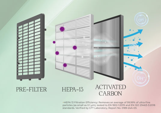 Built-in Ioniser technology and UV light to refresh and revitalise the air by neutralising bacteria and airborne particles. This creates cleaner and healthier air — ideal for individuals with respiratory sensitivities.