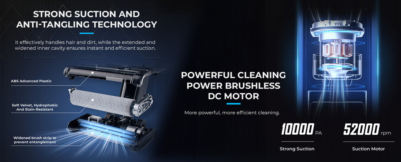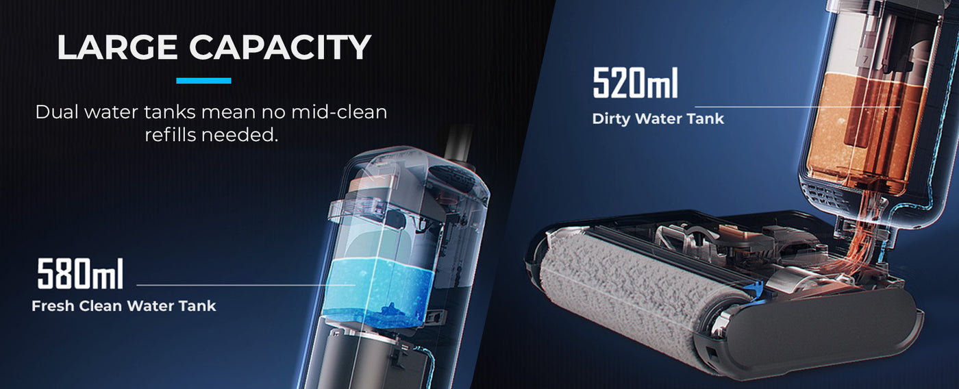- This 2-in-1 Vacuum and Mop offers 10,000Pa suction power and a 580ml water tank for versatile, deep surface cleaning.