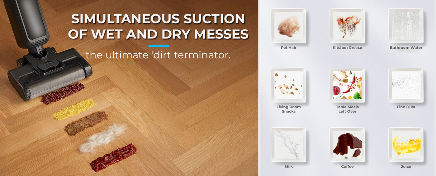 - The 5-in-1 Wet & Dry Vacuum combines Dual Rolling Brush technology with 15kPa suction power to clean thoroughly across all surfaces.